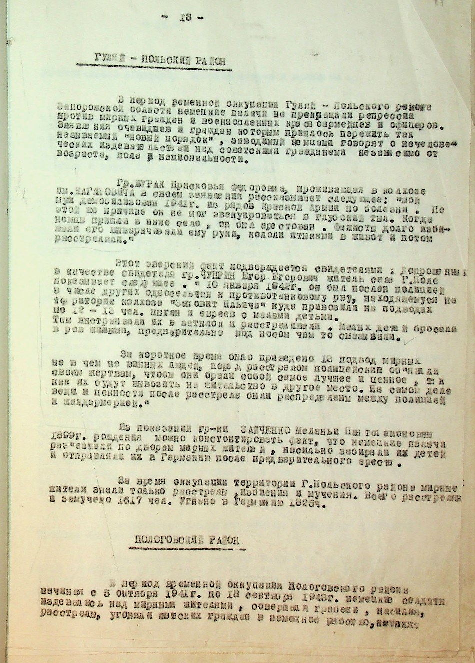 Доповідь про злодіяння нацистської окупаційної влади на території Пологівського району Запорізької області |
